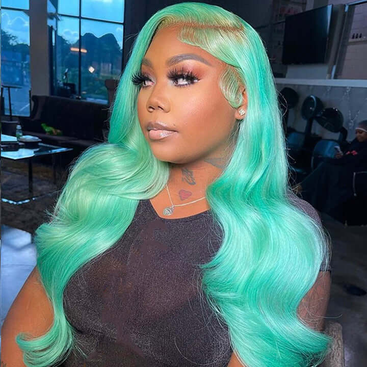 Mint Green Color Body Wave Human Hair Wigs Pre Plucked With Baby Hair Bling Hair