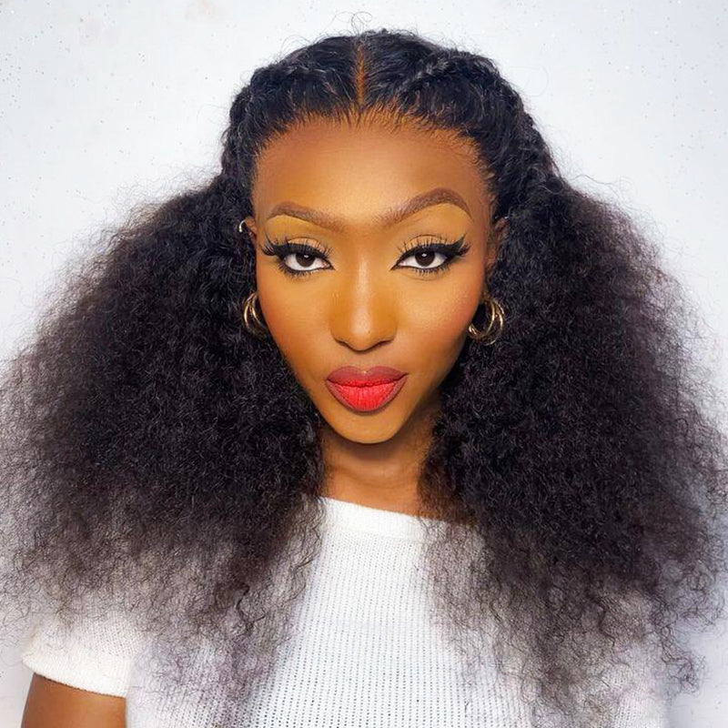 Kinky Curly Lace Front Human Hair Wigs Pre plucked Lace Frontal Wigs