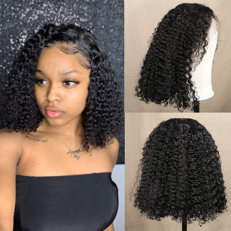 Short Deep Curly Transparent Lace Bob Wigs High Density Human Hair Wig