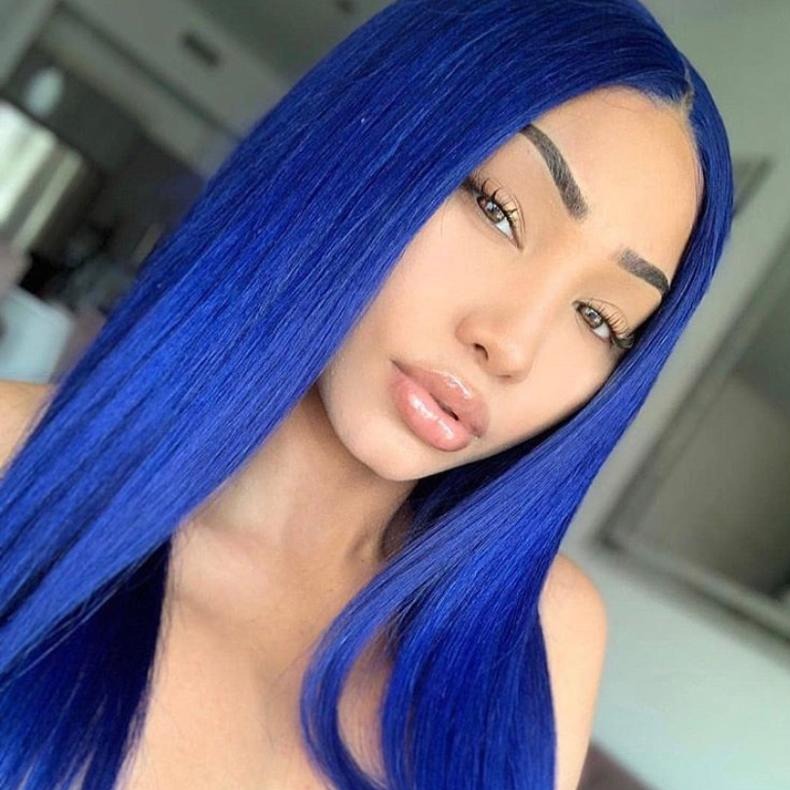 Klein Blue Colore Transparent Lace Straight Wig with Baby Hair Bling Hair