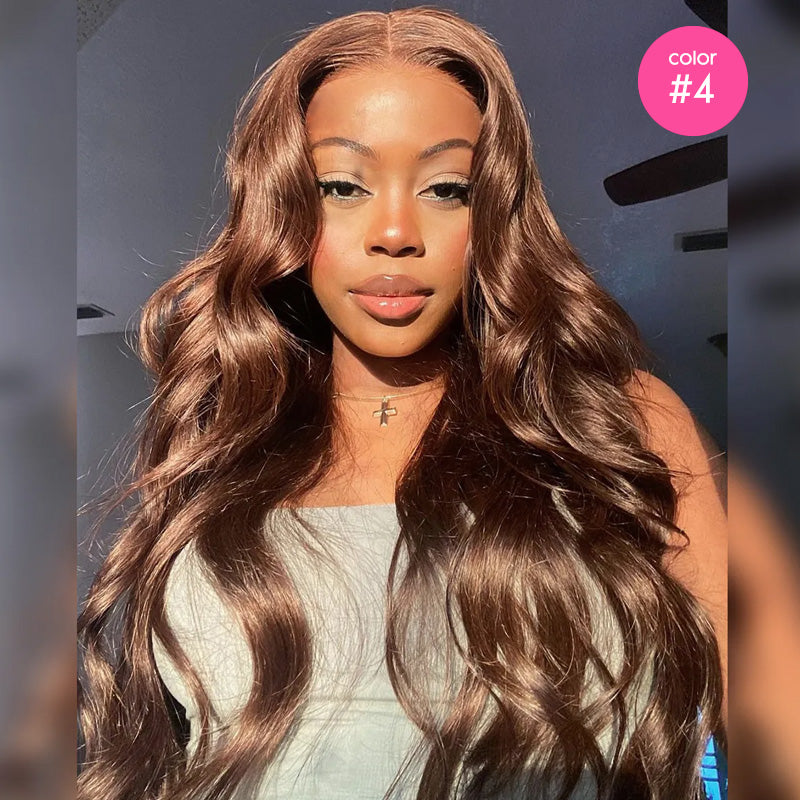 Bling Hair Brown Lace Front Human Hair Wigs Color #4 Body Wave 13x4 13x6 Lace Frontal Wig 180% Density