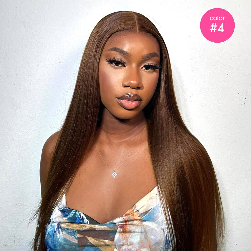 Bling Hair Brown 13x4/13x6 Lace Front Human Hair Wigs Color #4 Straight Lace Frontal Wig 180% Density