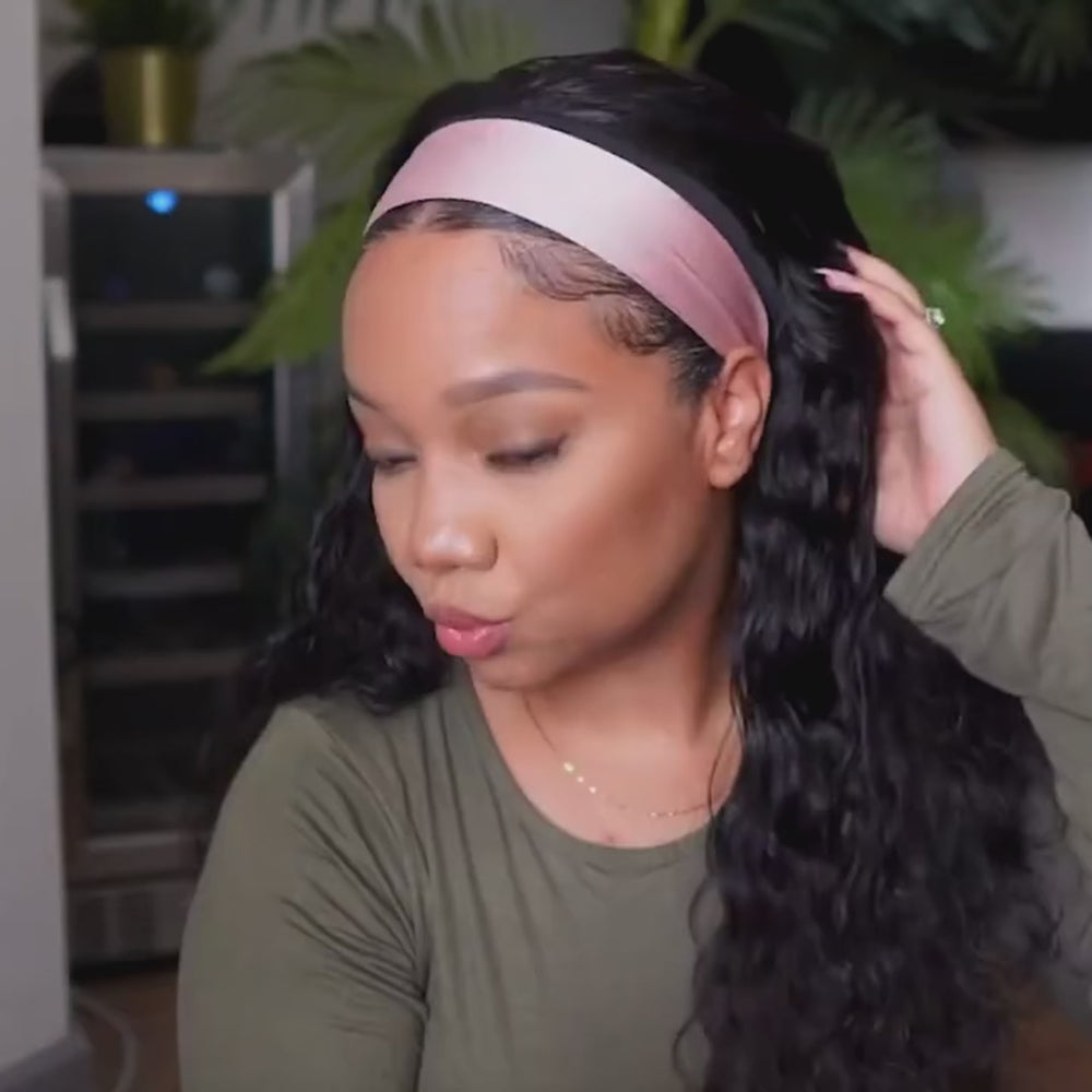 Super Sale Water Wave Headband Human Hair Wigs No Code Needed