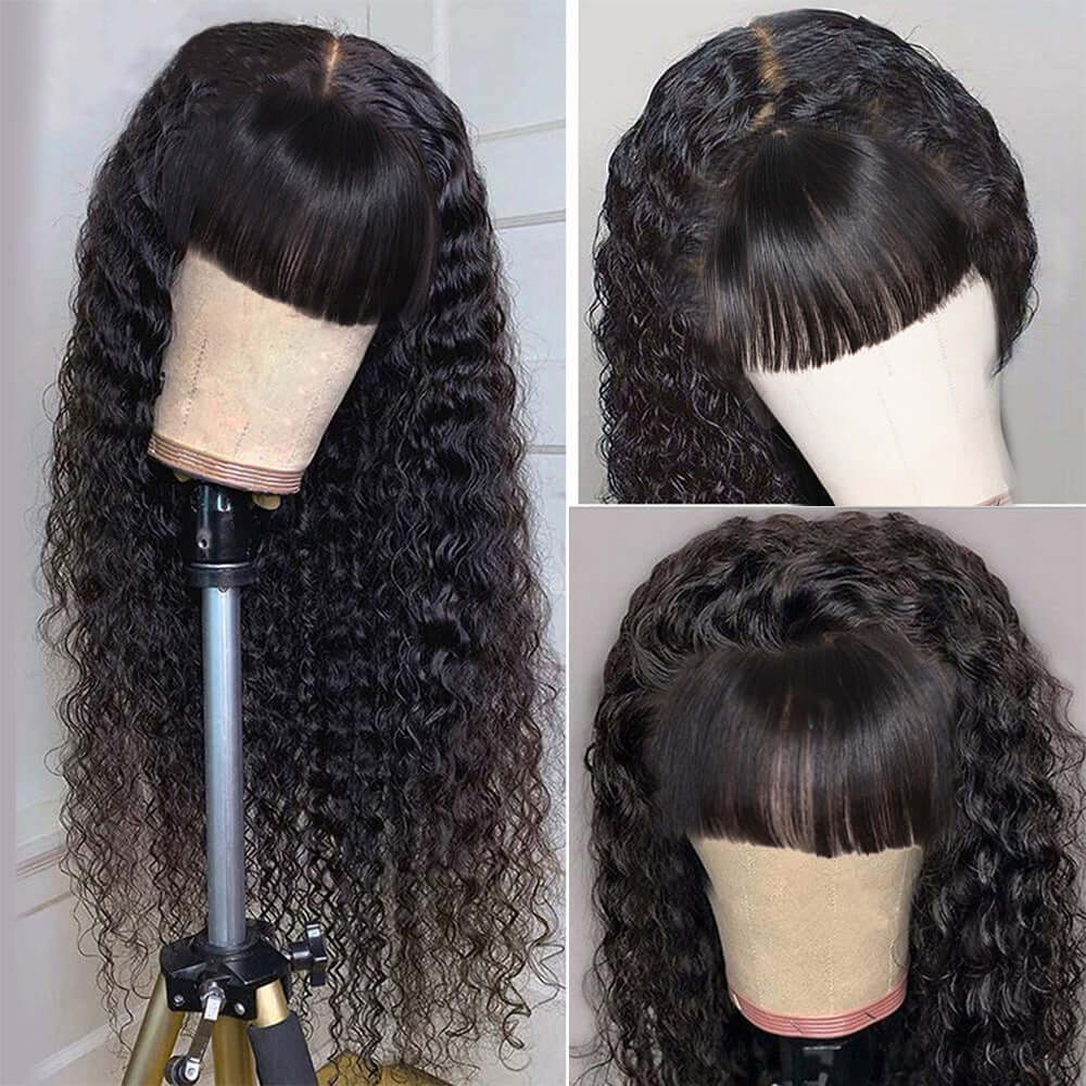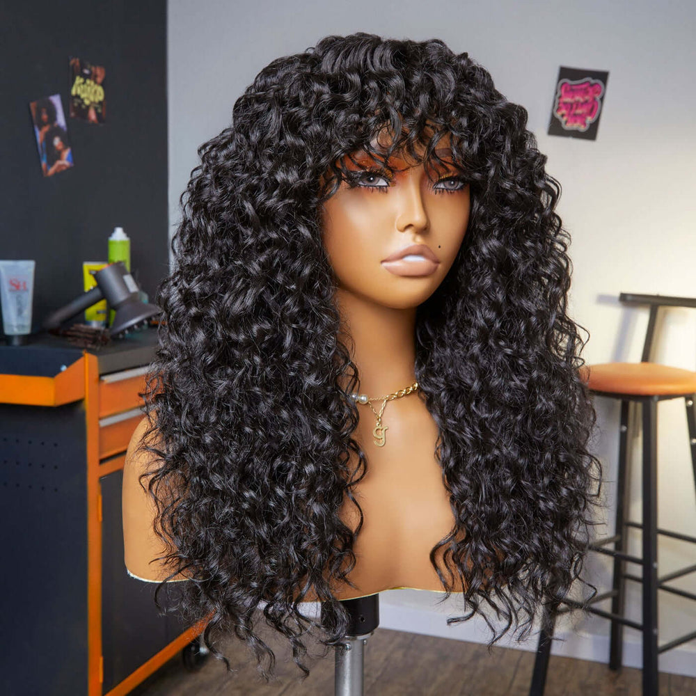 Long Curly Human Hair Wigs With Bangs--BlingHair