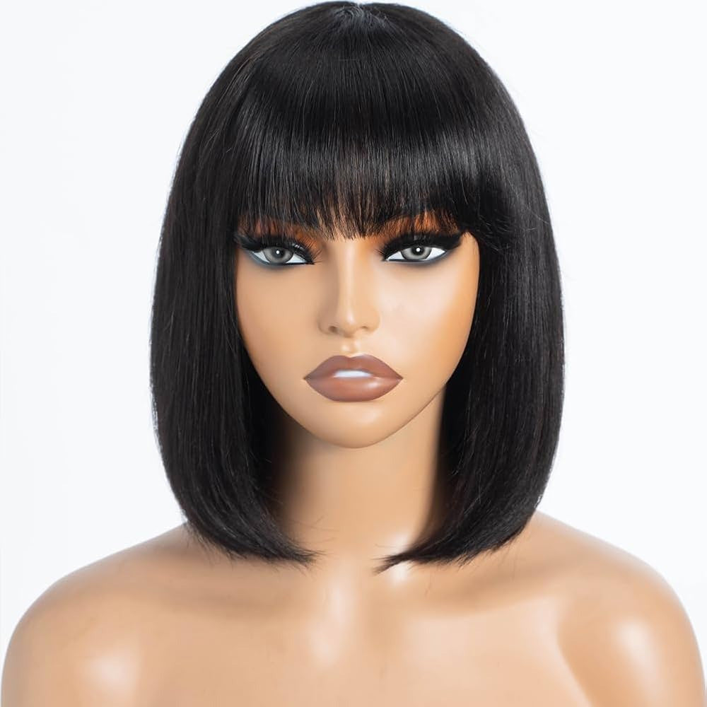 Straight Human Hair Short Bob Wig With Bangs Glueless Full Machine Made Fringe Wigs