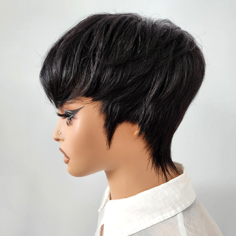 Pixie Cut Short Full Machine Made Human Hair Wigs No Lace No Glue