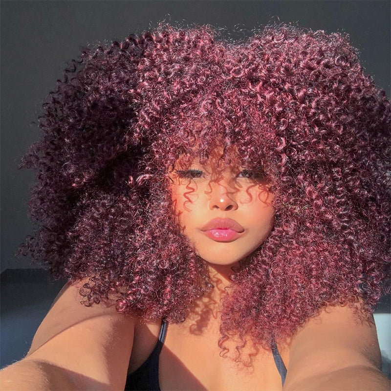 Short Afro Curly Wigs With Bangs African Curly Glueless Full Curly Human Hair Wig