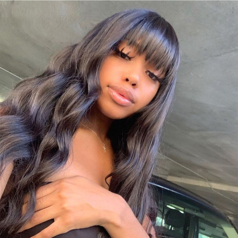 Brazilian Body Wave Human Hair Wigs With Neat Bangs Glueless Super Affordable Machine Made Virgin Hair Wig Bling Hair