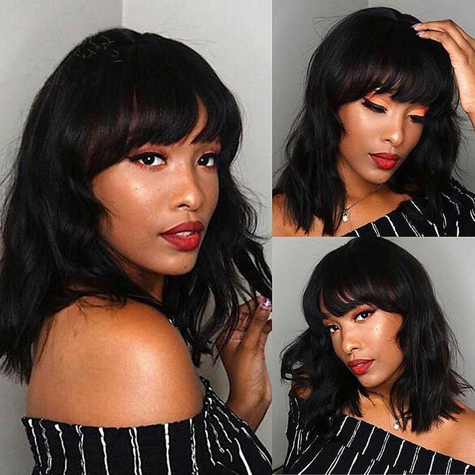 Bob Wig With Neat Bangs Glueless Super Affordable Machine Made Virgin Hair Brazilian Body Wave Human Hair Wigs Bling Hair