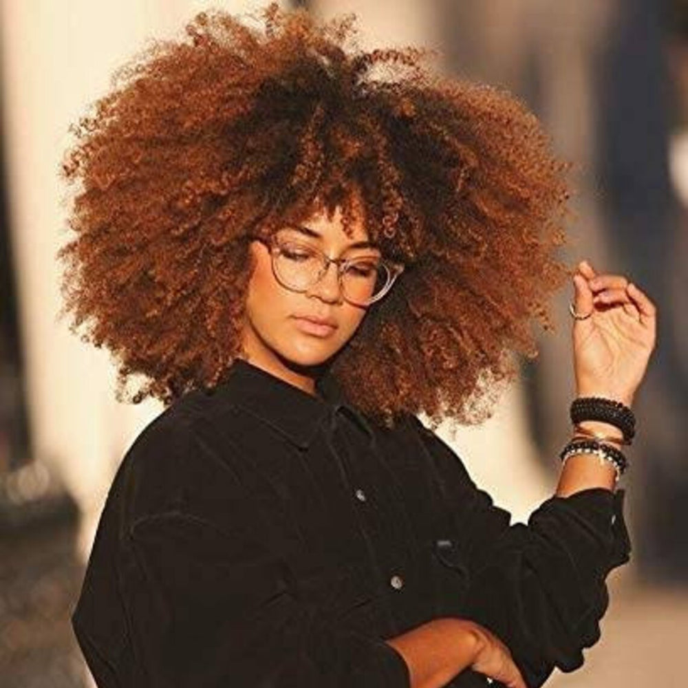 Ombre Highlight Brown Afro Kinky Curly Wig With Bangs Full Machine Made Wigs Remy Hair