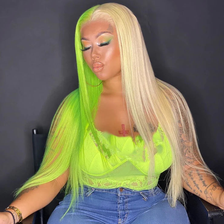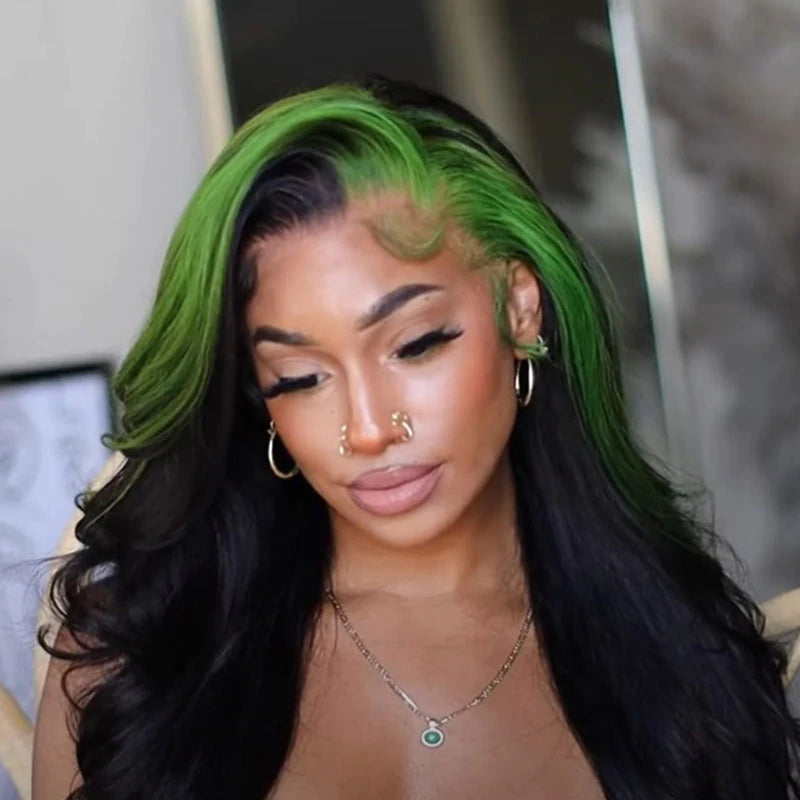Green Skunk Stripe Color Wig Transparent Lace Front Wigs