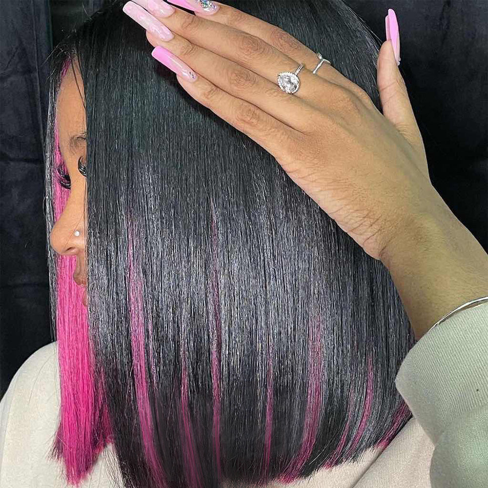 Candy Colored 13*4 Transparent Lace Frontal Wig Straight Short Bob Wigs Blinghair